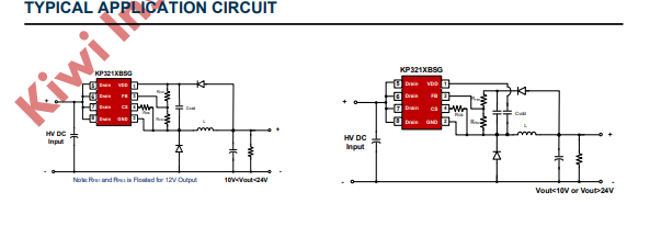 KP321XB 集成有完備的帶自恢復(fù)功能的保護(hù)功能: VDD 欠壓保護(hù)、逐周期電流限制、輸出過壓保護(hù)、過熱保護(hù)、過載保護(hù)和 VDD 過壓保護(hù)等。
