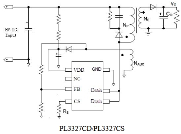 復(fù)合模式的應(yīng)用使得芯片能夠?qū)崿F(xiàn)低靜態(tài)功耗、低音頻噪音、高效率。而且高集成的功率 MOSFET 能夠降低外部 PCB的面積以及系統(tǒng)的成本。PL3327C 同時具有多種保護(hù)功能:逐周期峰值電流檢測、欠壓保護(hù)、過壓保護(hù)等。