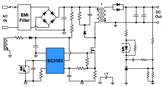SC2583是一款頻率可調(diào)的電流模式PWM控制芯片,在不同負(fù)載下工作于不同的模式,提高了系統(tǒng)整機效率。SC2583具有頻率抖動技術(shù),同時內(nèi)置了OTP、OCP、OLP、OVP等多種自恢復(fù)保護功能。