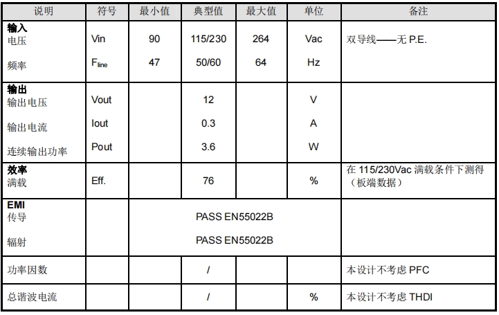 下表給出的是設(shè)計的最低可接受指標(biāo),實際性能在后續(xù)的測試結(jié)果部分給出。