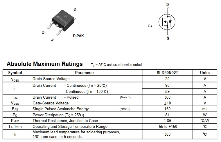 電壓與電流規(guī)格:SLD90N02T的工作電壓(VDS)為20V,連續(xù)漏電流(IDS)為90A,這意味著它能夠承受較高的電壓和電流,適合用于需要高功率輸出的果汁機(jī)。