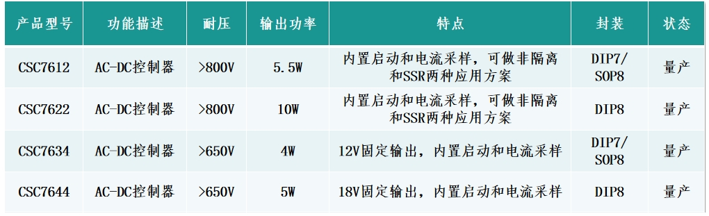 內(nèi)置800V功率MOSFET:CSC7622內(nèi)部集成了一個(gè)800V的功率MOSFET,這有助于減少外部元件的需求,同時(shí)提高電源效率。