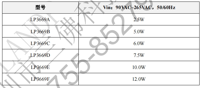 LP3669系列芯片的不同后綴型號主要區(qū)別在于它們支持的最大輸出功率。具體如下: