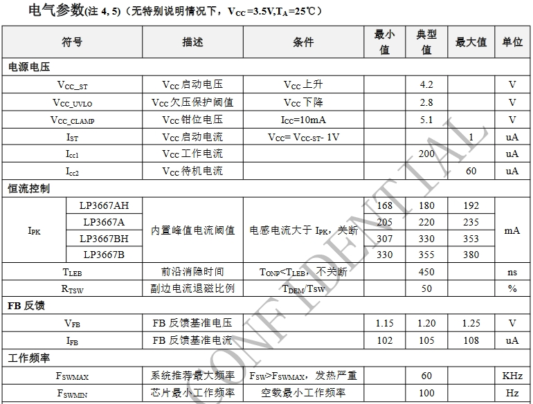 峰值電流閾值:根據(jù)數(shù)據(jù)手冊(cè),LP3667B的內(nèi)置峰值電流閾值在325mA到385mA之間,而LP3667BH的峰值電流閾值則在305mA到355mA之間。這意味著LP3667BH相比LP3667B有稍低的峰值電流閾值,這可能影響到它們?cè)谔囟☉?yīng)用中的性能表現(xiàn)。