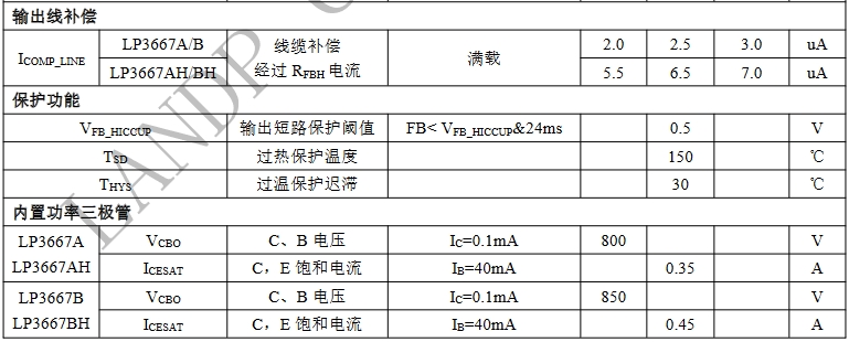 輸出線補(bǔ)償:LP3667BH具有6%的固定比例線纜補(bǔ)償,而LP3667B則為2%。這一差異可能會(huì)影響到輸出電壓的精確度和穩(wěn)定性,尤其是在長距離傳輸中。