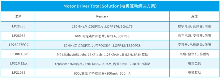 LP28027FOC是一款60MHz的定點DSP芯片,特別之處在于它內(nèi)置了FOC(磁場定向控制)固件,封裝形式為LOFP48或TSSOP38。這款芯片專為變頻器、電機驅(qū)動和伺服系統(tǒng)設(shè)計,能夠提供精確的電機控制和優(yōu)化的能效。