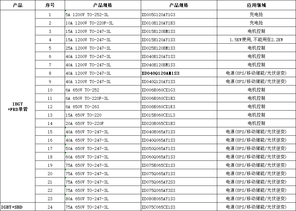 芯達茂XD040Q120AM1S3國產(chǎn)IBGT +FRD單管 40A 1200V TO-247-3L, 應用:電源(UPS/移動儲能/光伏逆變)