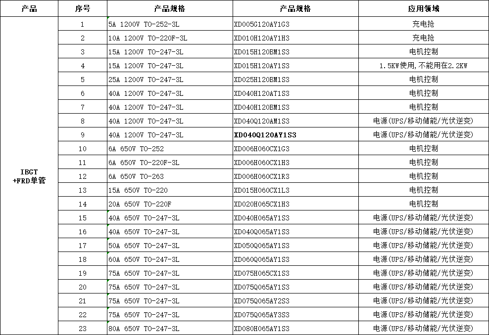 國(guó)產(chǎn)IGBT芯達(dá)茂XD040Q120AY1S3,IBGT+FRD單管40A 1200V TO-247-3L