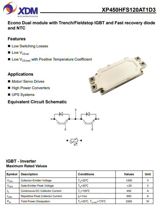 XP450HFS120AT1D3芯達(dá)茂 國(guó)產(chǎn)IGBT 功率模塊 450A 1200V