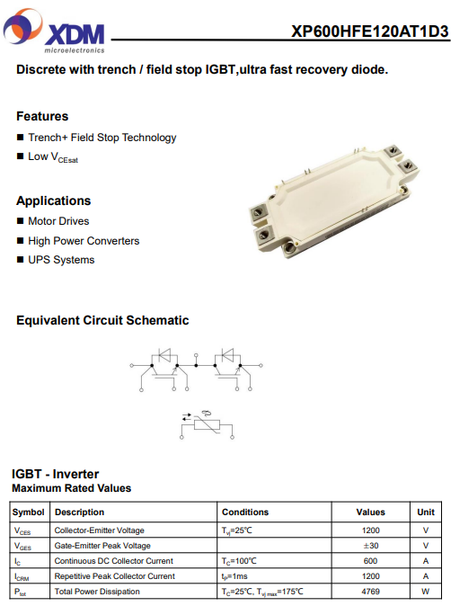 XP600HFE120AT1D3 芯達(dá)茂 國(guó)產(chǎn)IGBT 功率模塊600A 1200V