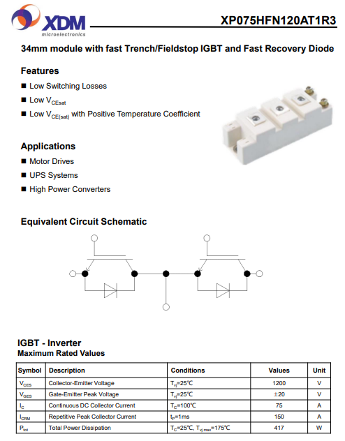 XP075HFN120AT1R3 芯達(dá)茂 國(guó)產(chǎn)IGBT 功率模塊 75A 1200V