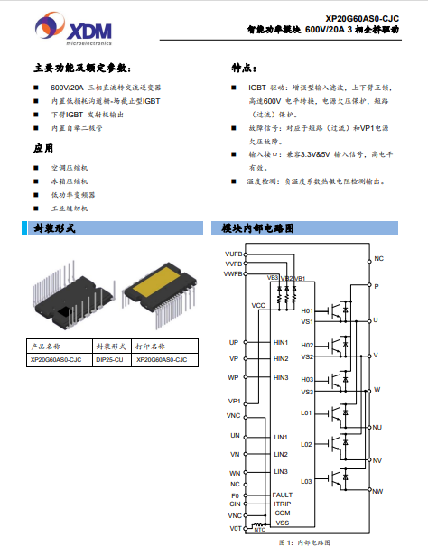 XP20G60AS0-CJCG 智能功率模塊 600V/20A 3 相全橋驅(qū)動