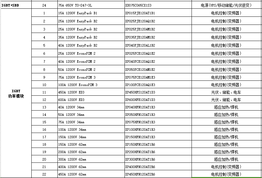 1200V電壓等級(jí):適用于高電壓應(yīng)用,如光伏逆變器、儲(chǔ)能系統(tǒng)和電動(dòng)汽車充電器。